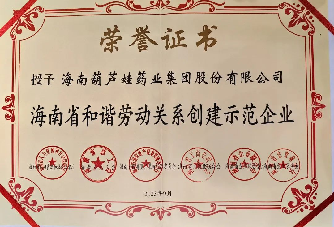 ks凯时药业集团获评“海南省和谐劳动关系创建示范企业”