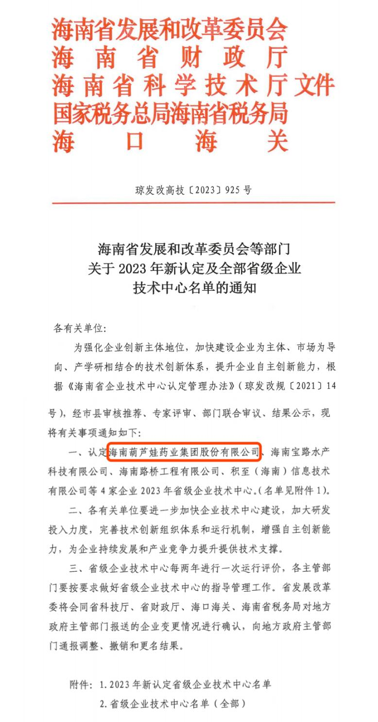 近日,海南省发改委等多部门联合公布了《关于2023年新认定及全部省级企业技术中心名单的通知》,其中,海南ks凯时药业集团股份有限公司成功通过评审,被认定为省级企业技术中心,是本次获批的4家企业之一。